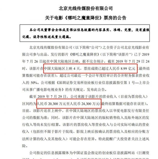 2019年光线传媒营收同比增89.7%,受计提影响净利下降三成 | 看财报