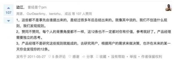 对于原来的12条军规,边江在知乎的回答算是代表了俞军系产品人对军规的看法:
