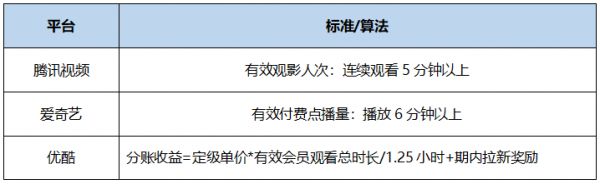 公式中的“有效观影人次”,则是指分账周期内每付费用户连续观看单一付费授权作品超过5分钟的一次或一次以上的观影行为。