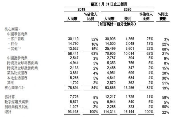 阿里巴巴2020年第四财季(即2020年Q1)实现营收1143.1亿元,同比增长22%,高于市场预期;