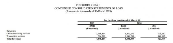 拼多多2020年第一季度实现营收65.41亿元,同比增长44%,大超市场预期;