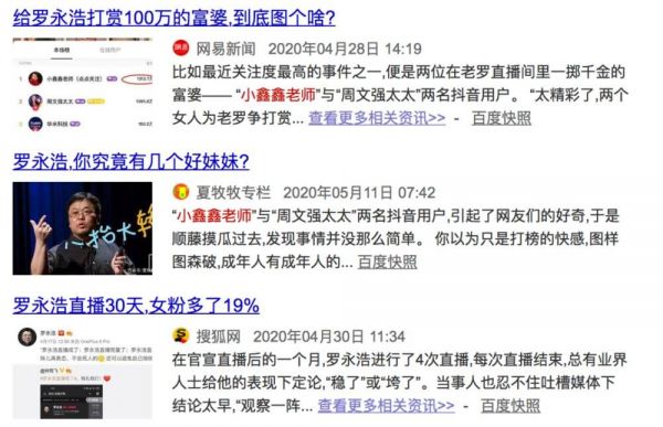 犹记老罗第二场直播,“小鑫鑫老师”和“周文强太太”两大富婆在音浪榜缠斗整晚,风头甚至盖过了正主老罗。堪称当代的五陵少年争缠头,一曲红绡不知数。