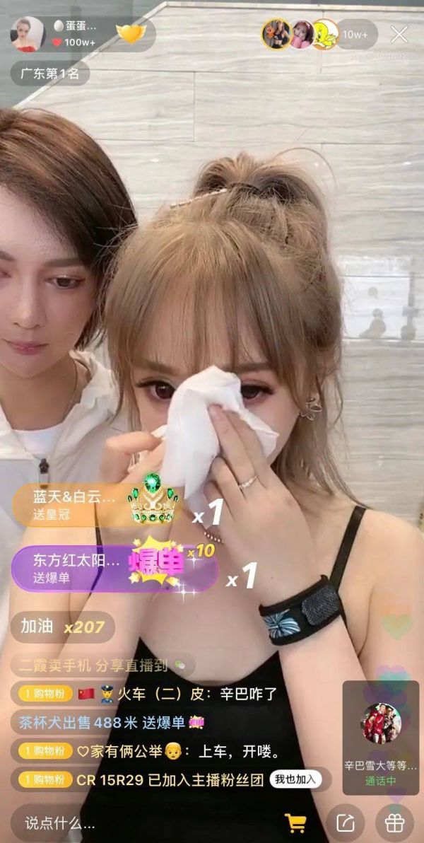 快手主播辛巴账号被封半个月后,5月23日,辛巴的徒弟蛋蛋“代父出征”。55分钟销售额破亿,蛋蛋含泪哽咽着感谢师父师娘和818的家人们。