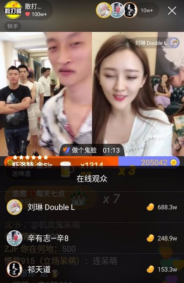 几年前,快手就流行砸钱抬咖了。想涨粉的无名新人,在网红主播的直播间狂刷礼物,抢下榜首。网红主播则会点名、连麦榜一大佬(即甩人),引导自家粉丝关注对方直播间,帮其涨粉。