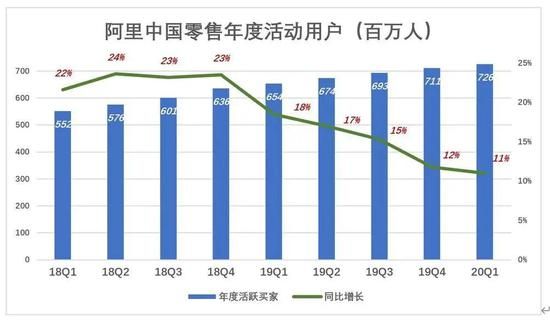 截至2020年3月末,移动端月活用户达8.46亿;过往12个月有购物行为的用户(年度活跃用户)达7.26亿,较2019年同期净增7200万,增幅为11%。