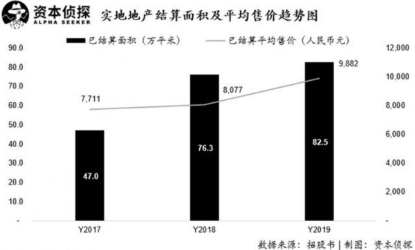 进入2019年,实地地产实际结算面积为82.5万平米,同比增长仅为8.2%,增速远低于2018年对2017年62.3%的同比增速。