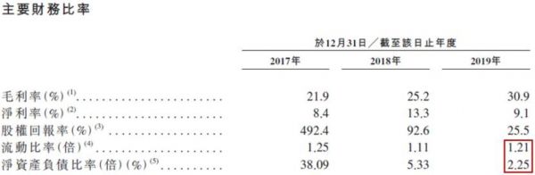 招股书显示,实地地产2019年流动比率为1.21,短期偿债风险较2018年有所提高;而尽管净资产负债比率在过去三年呈现快速下降的趋势,并在2019年下降到仅为2.25,但公司依赖负债进行发展的比例仍然较高。