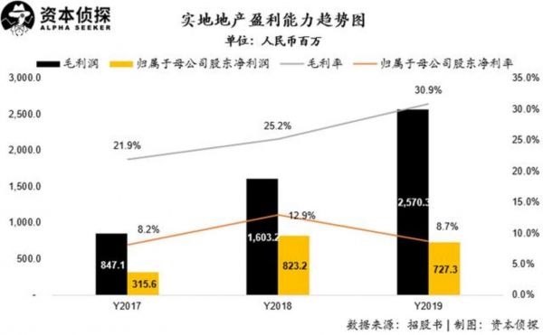 2019年,实地地产归属于母公司股东的净利润为7.3亿元人民币,同比下降11.6%,利润率也从2018年的12.9%下降至2019年的8.7%。