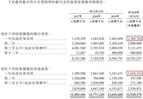 但尽管如此,截止2020年一季度末,实地地产一年内到期的银行贷款及其他借款总额已接近43亿元人民币,相比2019年末的35.8亿元人民币再次大幅提升。