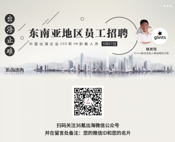 本月27日,下午14点,36氪出海将会举办第一期【出海止难|海外用工】分享,届时我们将邀请资深的HR专家,来与大家一同分享在东南亚招聘和员工管理的经验,并对相关问题进行解答。