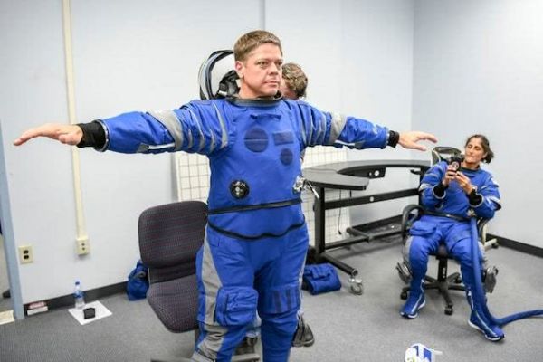 佛罗里达州卡纳维拉尔角的肯尼迪航天中心,鲍勃·贝恩肯(Bob Behnken)正在试穿宇航服