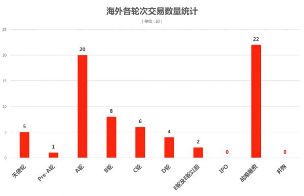 交易数量:近7日交易周期内数据研究表明,海外交易数量主要集中分布于A轮与战略融资阶段。