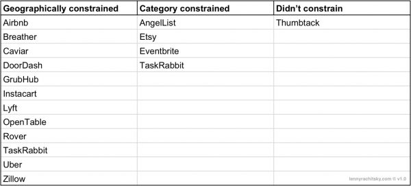 除却基于位置的marketplace业务企业之外,其他几乎所有的此类企业则是从限制自己的产品和服务类别开始做起: