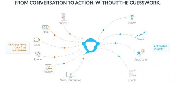 Salesforce LiveMessage 的前身是其2016年9月份收购的短信创业公司HeyWire。Salesforce在此领域的并购或投资行为一直持续, 最近的一笔相关收购在2019年5月,将2017年创立的以色列对话式AI创企Bonobo AI纳入囊中,收购金额大约在4000~5000万美元。Bonobo AI帮助分析人机交互沟通内容,包括电话沟通、文字短信等,以从中分析客户行为,提炼出有价值的洞见,最终指导决策行动。 Bonobo AI的定位比较特别,不在沟通界面,而在后面的沟通内容分析。这也体现了像Saleforce这样的SaaS巨头,常见的对话式AI技术早已不在话下,其关注点更深更细。