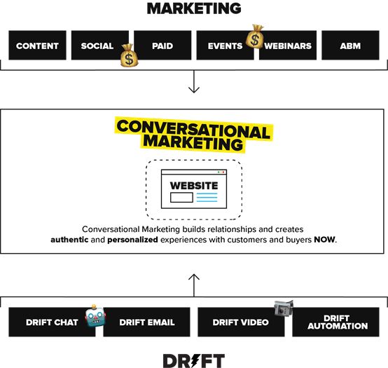 Drift的对话式营销业务价值示意图
