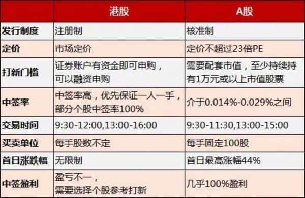对于港交所来说,上市条件没有A股苛刻,每年IPO上市的新企业也较多,加之没有A股的新股发行当天市值“不超于23倍市盈率”的隐形红线,所以收益也较高。