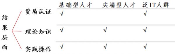 我们从体验层面和结果层面来进行探讨。体验层面主要指用户在参与培训过程中的观感体验,包括对教学内容的体会、对教学服务的体验等。结果层面主要指用户在学习过程中或学习结束后是否获得了自己希望得到的学习结果,如获得资格证、能够实操技能、获得工作机会等。