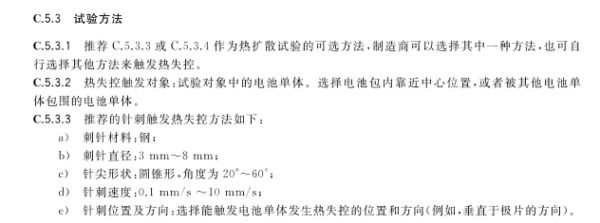 刚刚发布的国家GB30381-2020标准中,删除了电池单体针刺测试,只是将针刺实验作为一种触发热失控的推荐方法之一,制造商可用可不用。