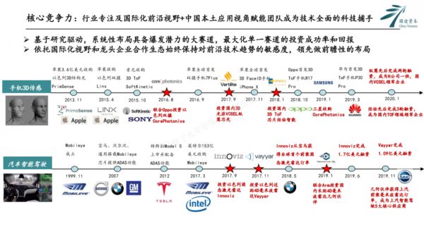 但是结构光、ToF里,都必须有一颗非常重要的VCSEL激光器。所以在2017年苹果发布iPhone X之前,我们挖掘并投资了国内的纵慧芯光。今天,纵慧成为国内多家手机品牌高端机VCSEL的主要供应商。