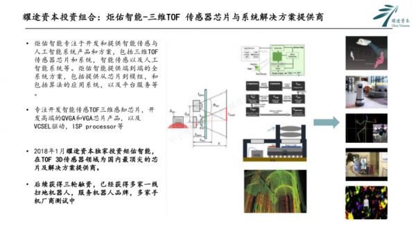 2017年9月,我们在天使轮独家投了炬佑智能。当时结构光非常火,很多机构还没看到ToF领域的机会。今天,炬佑三位一体地打造高分辨率的Top Sensor、VCSEL Driver、ISP Processor,技术与商业化进展迅速。后续已经拿了四轮融资,在国内具备非常强的综合实力和竞争力。