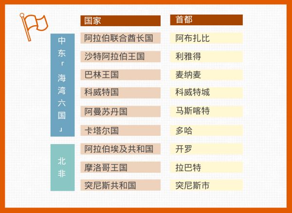 中东北非,英文缩写为“ MENA ”,涵盖的范围并没有统一的标准。一则商务部发布的新闻中提到,中东和北非地区包括16个经济体:巴林、科威特、阿曼、卡塔尔、沙特和阿联酋(以上六个国家又组成了海湾合作委员会GCC,通常被合称为“海湾六国”)、阿尔及利亚、伊朗、伊拉克、吉布提、埃及、约旦、黎巴嫩、摩洛哥、突尼斯以及约旦河西岸和加沙。