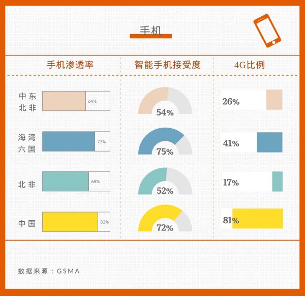 但这一市场也有其明显优势。一方面,这一区域的手机渗透率已达六七成,智能手机接受度也在50%以上,海湾六国的互联网渗透率更远高于中国。另一方面,与用户数量多但付费意愿低的印度相反,中东尽管用户数量少,但付费意愿更强。同时,中东北非地区的宗教和语言也较为统一。