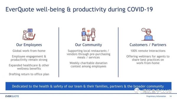 另外,EverQuote表示,其专有的分布式数据平台以及基于云计算的产品和系统使得员工能够顺利地从家中展开工作。