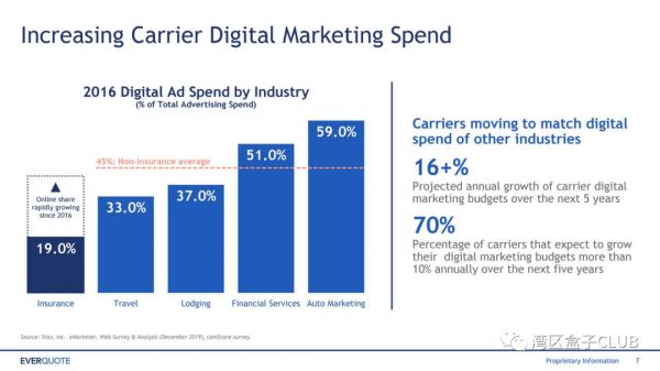 对于EverQuote来说,汽车保险约占其总收入的80%,其余部分则是人寿/健康和家庭保险。