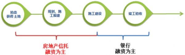 在项目的初期,由于可用于抵押的资产有限(可能仅有一块空地),项目的不确定性较大(规划报建可能不通过或者施工风险),银行出于审慎的原则,授予的贷款额度有限。而另一方面,从土地拍卖,到设计施工需要花费大量的资金,开发商有着强烈的融资需求。在这种情况下,房地产信托应运而生,成为地产项目初期最重要的融资手段。
