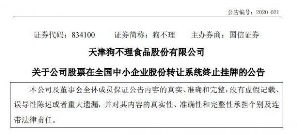 尽管狗不理对于退市缘由语焉不详,但从其业绩连年增长的财报来看,狗不理这波退市,还真有可能就是正常的市场行为。/狗不理退市公告