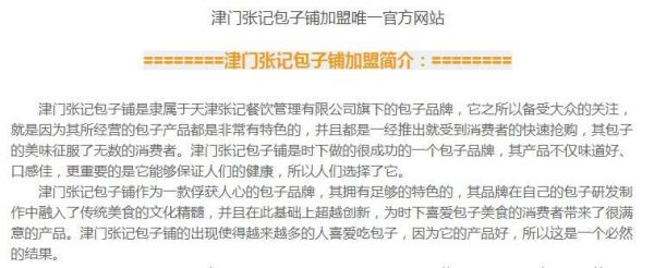 张记包子的加盟简介,不谈历史多悠久(当然也没啥历史好吹),不谈原料多优质。说来说去无非就是“包子好吃,大家爱吃”。