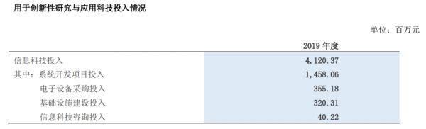 另一家股份行,平安银行2019年IT资本性支出及费用投入34.97亿元,其中用于创新性研究与应用的科技投入10.91亿元。
