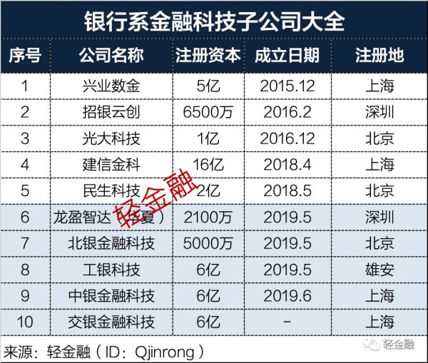 金融科技子公司,是银行独劈市场化机制发展金融科技的一大阵地。2019年,工行、中行相继成立了自己的金融科技子公司,2020年交行金融科技子公司也开始设立。