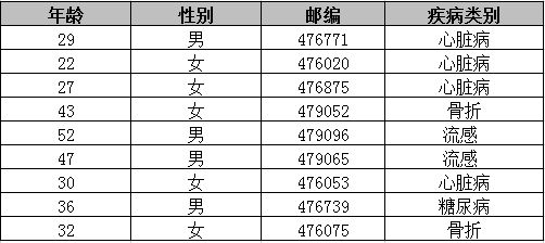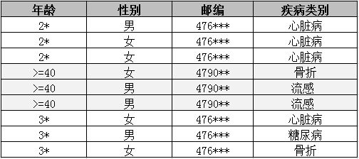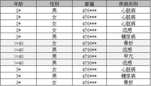 K-匿名泛化脱敏处理后的医疗信息表