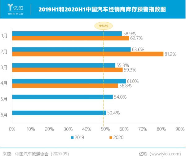据中国汽车流通协会蓝皮书数据显示,2019全年汽车经销商全年亏损比例相较2018年进一步扩大至41%,自2018年1月起连续28个月汽车经销商库存预警指数超50%荣枯线,其中,受疫情强影响的2020年2月,更是达到81.2%的历史新高。