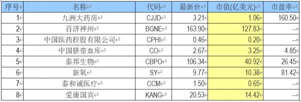 当前,生物医药健保类中概股一共有8家。