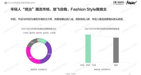 根据CBNData发布的《2019中国潮流消费发展白皮书》显示,90后、00后群体在线上潮流市场消费群中的占比已经达到81%,成为国内潮流市场绝对的消费主力。