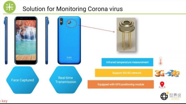 我们希望它未来能够在非洲充当一种可以长期日常应用的健康监测设备,因为考虑到埃博拉也好,非洲流行的其他呼吸道传染病也好,都伴有发热症状,这款智能手机可以在自动模式下用红外相机镜头去扫描人脸,然后实现自动测温和数据实时传输,一旦监测到体温异常的人,它就马上把位置、人脸和温度信息上传到卫生部的后台。