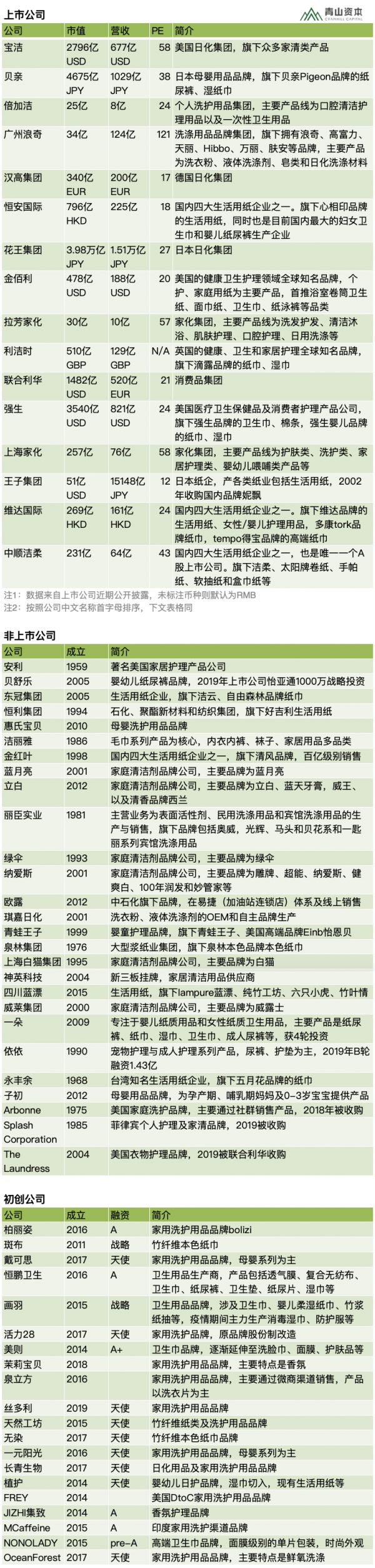 家庭清洁广义包括洗涤用品、生活用纸(纸巾/湿巾)、鲜花香氛等。本文主要探讨清洁洗剂和纸品两大类。正如《青山资本2020中国快消品早期投资机会报告》中提到,整体家庭清洁洗剂行业、生活用纸行业市场规模均约为1200亿,年增速超过6%。