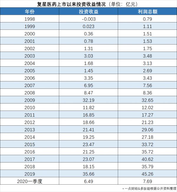 查看复星医药上市以来的相关财务数据发现,其常年靠投资收益来“续命”。