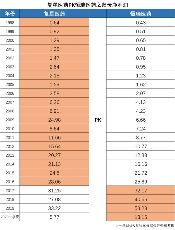 而到了今年一季度,恒瑞医药的归母净利润已是复星医药的两倍多。