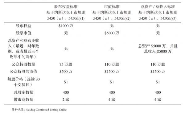(纳斯达克全球精选市场和纳斯达克全球市场持续挂牌条件)