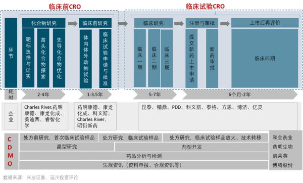 CXO是医药研发和生产外包服务,类似于电子行业的代工服务。如果说创新药是西部淘金,那CXO就是一个卖铲子卖水的行业。CXO主要分为研发外包CRO和生产外包CDMO。CRO又分为临床前CRO和临床CRO。
