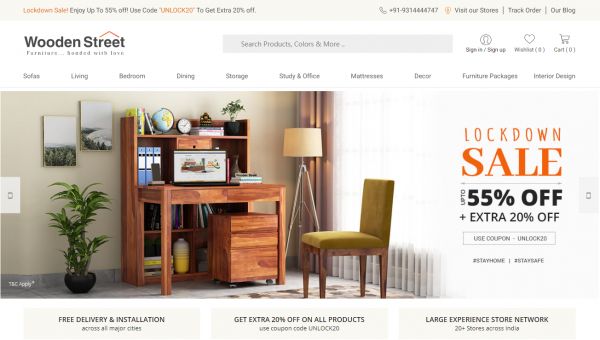 WoodenStreet 销售不同价位的定制木制家具,用户可以从现有的预定设计目录中选择产品,根据木材类型、织物类型和颜色来定制家具。WoodenStreet 会根据客户的要求进行修改,或者与设计师进行沟通。WoodenStreet 还吸引了500多名印度工匠手工制作工艺品。