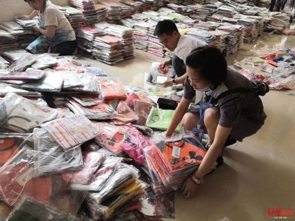 前台不远处,是堆积了大量的童装衣服,从各地赶来的陌生人正跟着公司员工了解情况,一旁的清洁工阿姨整理着看货后的现场,傅傅空闲之余也上手一起整理,每天来看的人太多了,新到的货堆在一旁也需折叠整齐。