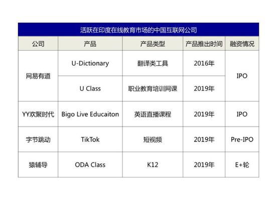 看好印度在线教育市场的中国玩家不只是网易。在2019年这一个时间点,包括字节跳动、欢聚集团、猿辅导在内,一批中国玩家开始用产品等更“重”的方式布局该领域。