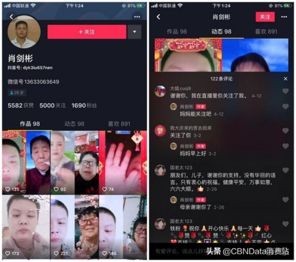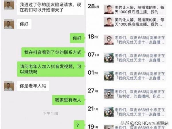 “肖剑彬”5000人的关注列表中,几乎都是清一色的老年人。他的“喜欢”列表中,也都是老年人的视频。“肖剑彬”最后一次发布视频要追溯到今年2月15日,视频中,却留下了他的微信和手机号码。