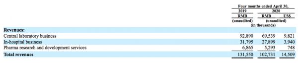 招股书显示,中心实验室业务是燃石医学最重要的收入来源。在2017年、2018年、2019年及截至2020年3月31日的Q1,其贡献收入在同期公司总收入中占比分别为79.1%,77.3%,72.4%和68.6%;同期院内业务收入占总收入的比例分别为9.7%,15.9%,23.0%和25.4%;药物研发的营收最小,贡献比例基本在6%左右。