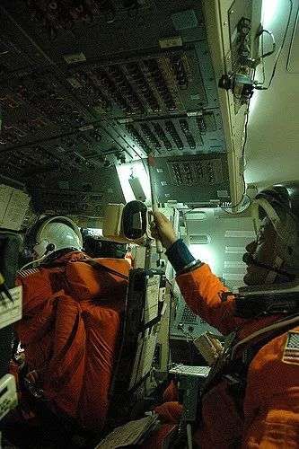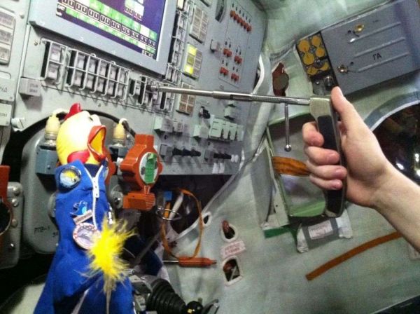 另外,由于老式机型的按钮实在太多,分布在宇航员的四面八方,坐在座位上是碰不到的很多按钮。在俄罗斯联盟号飞船和美国的太空梭上,坐在某些位置上的宇航员都要用到一根(并没有很特别的)棍子去按按钮: