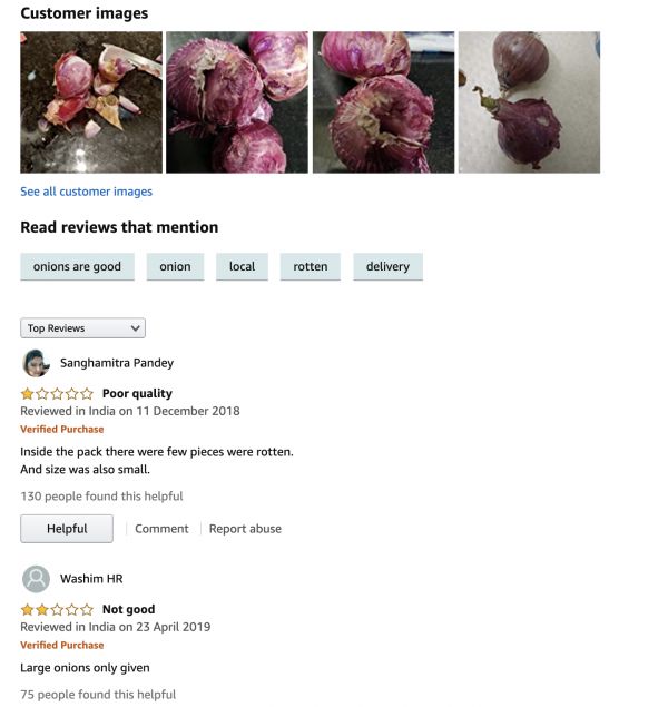 印度消费者在 Amazon Fresh 上抱怨买到了坏掉的洋葱